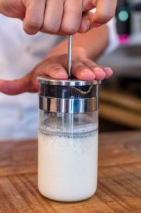 Texturitzar la llet amb una premsa francesa és fàcil i molt ràpid.