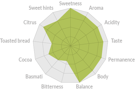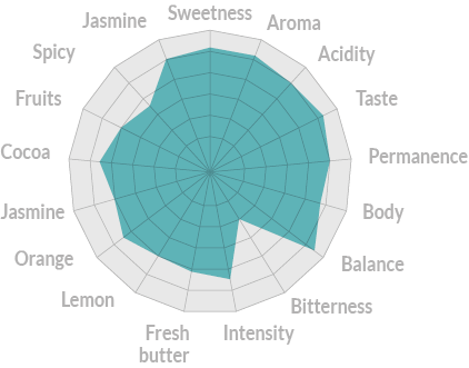 It is not usual to find a 100% organic, quality decaffeinated coffee on the market. It has a notable balance between sweet cocoa and mandarin acid notes. Cereals, toast and basmati structure this impeccable espresso.